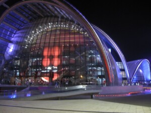 National Academy for the Performing Arts. A beautiful but controversial building: cost overruns, the use of immigrant non-labor union, the idea of creating a centerpiece building rather than spreading the wealth around the country were all concerns. Not to mention several problems that remained after construction.
